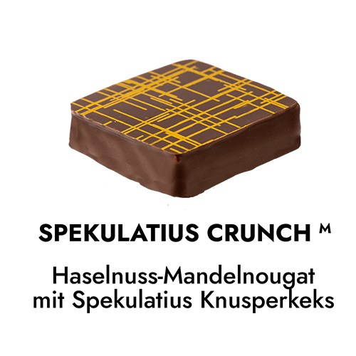 Zutaten: Zucker, Kakaobohnen, Kakaobutter, Mandeln, Mandel-Drink (Wasser, Mandeln 3,5%, Salz, Stabilisator: Gellan), Invertzucker, Glukose, Kokosöl, Passionsfruchtpüree, Zwetschgenpüree, Himbeerpüree, Haselnüsse, Macadamiakerne, Pistazien, Pekannüsse, Reissiruppulver, Erdmandelgrieß, Blaumohn, Reismehl, Himbeeren gefriergetrocknet, Kartoffelprotein, Emulgator: Sonnenblumenlecithin; Ätherisches Öl: Orange; Kaffee, Salz, Zimt, Spekulatiusgewürz, Vanille, Tonkabohne, Farbstoffe: Calciumcarbonat, Allurarot AC, Kurkumin, Aktivkohle.