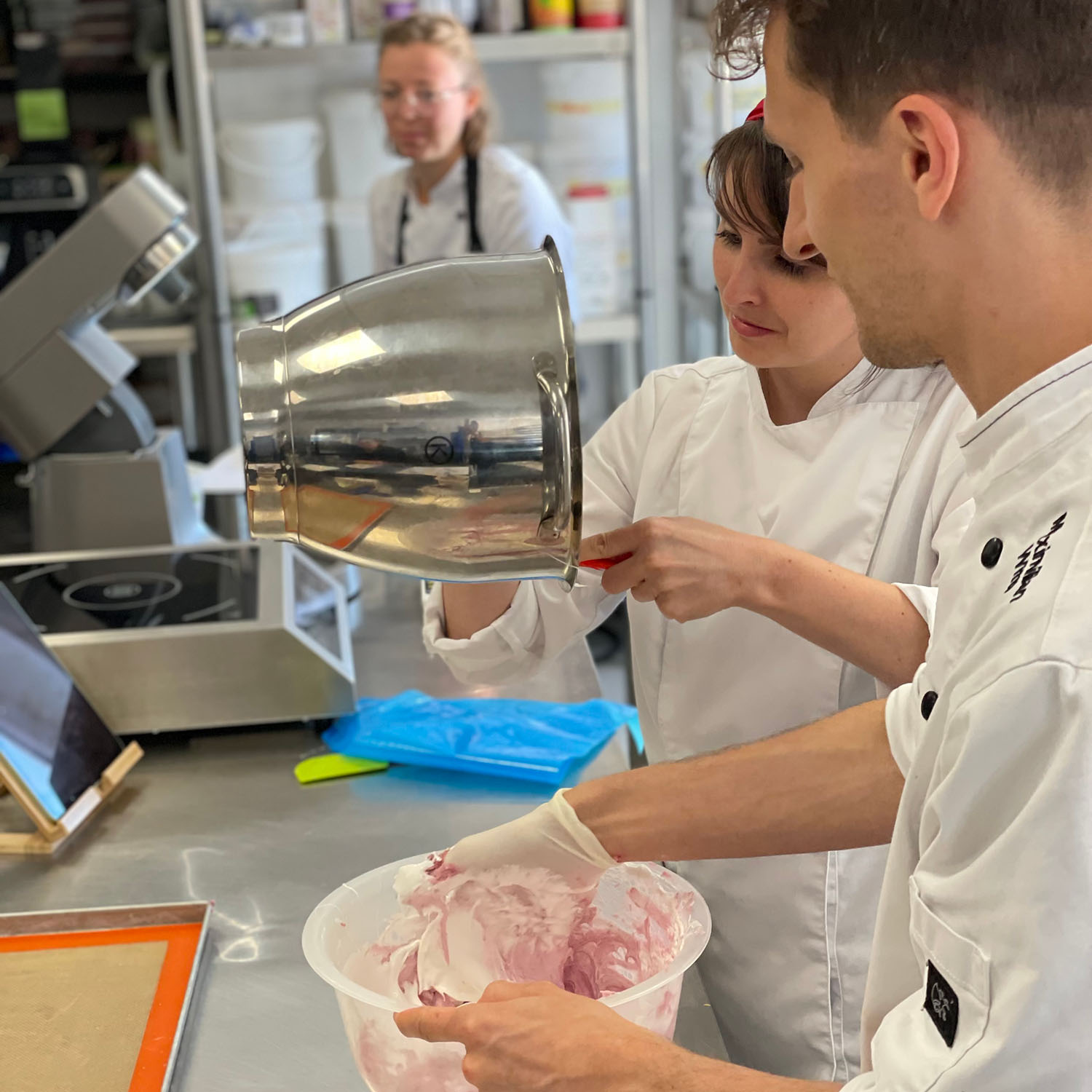 Gemeinsam backen wir verschiedene Schalen, stellen vier abwechslungsreiche Füllungen her – von fruchtigen Geleekernen bis zu samtigen Ganachecremes mit Nuss, Vanille & Co. Du erfährst, wie man veganes Eiweiß clever ersetzt, worauf es bei der Macaronage ankommt und wie du auch zu Hause zuverlässige Ergebnisse bekommst.