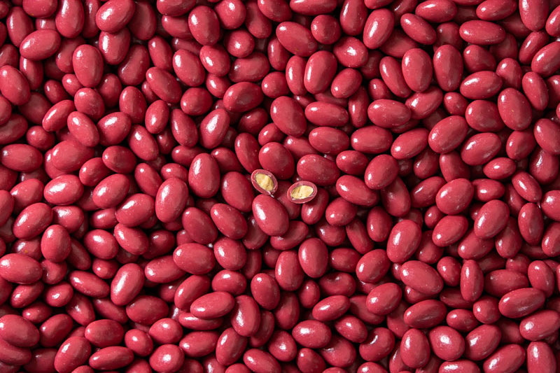 Zutaten: Zucker, Kakaobohnen, Kakaobutter, Mandeln, Mandel-Drink (Wasser, Mandeln 3,5%, Salz, Stabilisator: Gellan), Invertzucker, Glukose, Kokosöl, Passionsfruchtpüree, Zwetschgenpüree, Himbeerpüree, Haselnüsse, Macadamiakerne, Pistazien, Pekannüsse, Reissiruppulver, Erdmandelgrieß, Blaumohn, Reismehl, Himbeeren gefriergetrocknet, Kartoffelprotein, Emulgator: Sonnenblumenlecithin; Ätherisches Öl: Orange; Kaffee, Salz, Zimt, Spekulatiusgewürz, Vanille, Tonkabohne, Farbstoffe: Calciumcarbonat, Allurarot AC, Kurkumin, Aktivkohle.